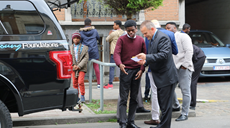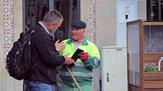 Brother Gerald and the European team fellowshiping and distributing material in Brussels, Belgium.