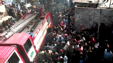 From the archives: March 2009, believers take a short rest to sing while distributing material.