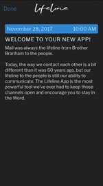 Dans l’application Lifeline, vous aurez accès à la même Citation du jour inspirante que vous trouvez sur le site branham.org. De plus, vous pourrez passer directement à l’application The Table ou au site branham.org avec les hyperliens.