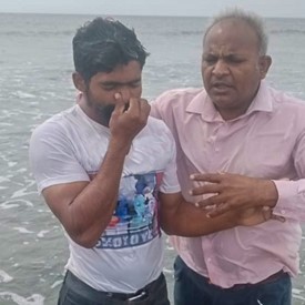 Distribution de tablettes Agapao à Uppada, en Inde.