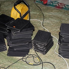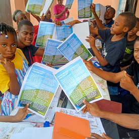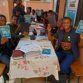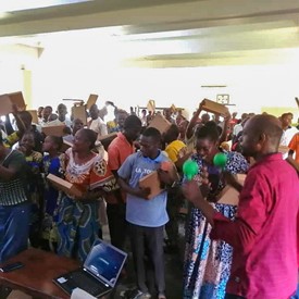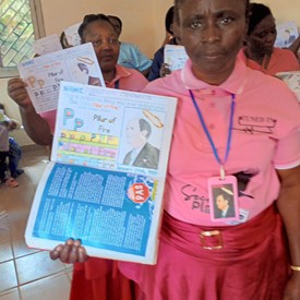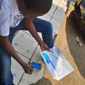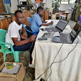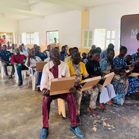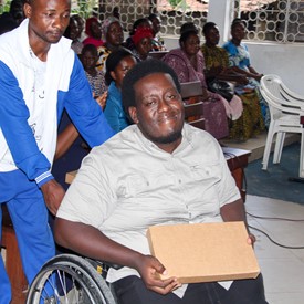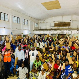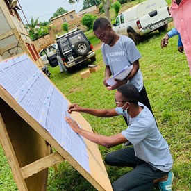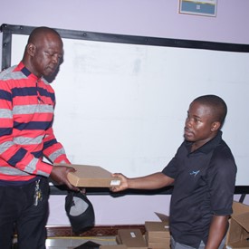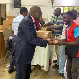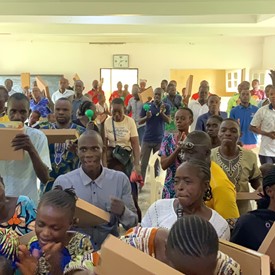 Distribution de tablettes Agapao à Dolisie, au Congo Brazzaville.