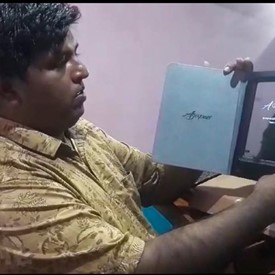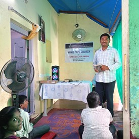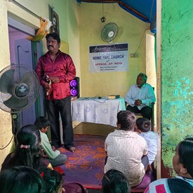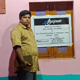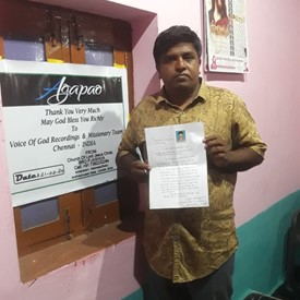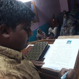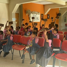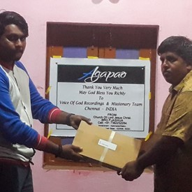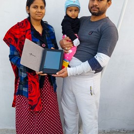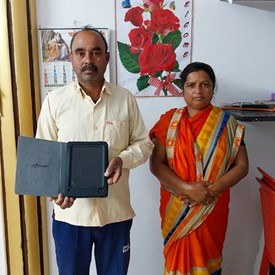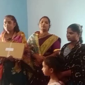 Distribution de tablettes Agapao à Annavaram, en Inde.