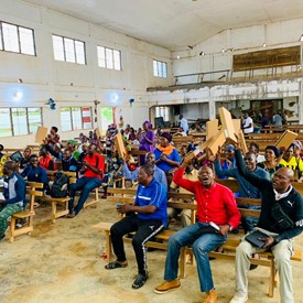 Des frères et sœurs du Cameroun étaient très excités de se rassembler pour faire un quiz YF.